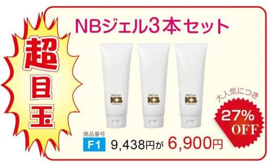 お客様にはご迷惑をお掛けしてしまい、申し訳ございませんが、 ご了承のほど、よろしくお願い申し上げます。 年末感謝セール限定 お得なNBジェル3本セット!! 〜一家に一本の必需品〜 家族で使える保湿ジェル ・ノンオイル・・・ 油脂に反応する方も安心 ・防腐剤無配合・・・ 敏感肌の方も安心 ご使用方法 朝・夜の洗顔後、化粧水の後にお付け下さい。 お子様にご使用の場合は、洗顔後におつけください。 内容量 100g×3本 価格 主成分 コラーゲン・ヒアルロン酸・竹酢・加水分解酵母・アロエエキス・シソエキス・オトギリソウエキス等、10種類のハーブ配合 全成分 水、BG、グリセリン、PEG-6、PEG-32、竹酢液、ヒアルロン酸Na、カルボマー、加水分解酵母エキス、グリチルリチン酸2K、水酸化K、オウゴンエキス、シソエキス、サクシニルアテロコラーゲン、アロエベラ液汁、カンゾウ根エキス、オトギリソウエキス、カミツレエキス、フユボダイジュ花エキス、トウキンセンカ花エキス、ヤグルマギク花エキス、ローマカミツレ花エキス、カフェイン、ポリアクリル酸Na、銅クロロフィリンNa